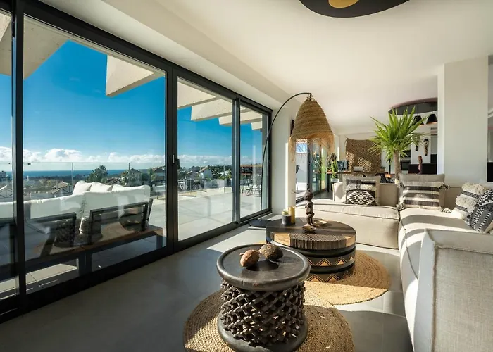 Double 250M2 Apartment With Sea View At Oasis325 Estepona 埃斯特波纳设有免费私人停车场,私人游泳池和健康中心,距离马贝拉度假村高尔夫俱乐部有5分钟车程. 住所距离火烈鸟高尔夫球场只有一箭之地了,步行仅20分钟就到了.